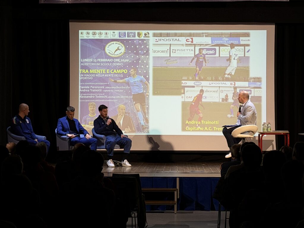Trento, 23 febbraio – Si è svolto nella serata odierna a Denno l’incontro «Tra mente e campo», appuntamento organizzato dall’Union Sportiva Bassa Anaunia che ha visto tra i relatori anche il capitano dell’A.C. Trento 1921, Andrea Trainotti.